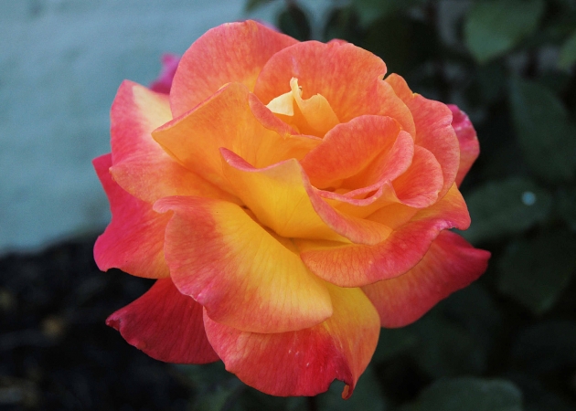 "Brilliant colored rose from Kathy's garden."